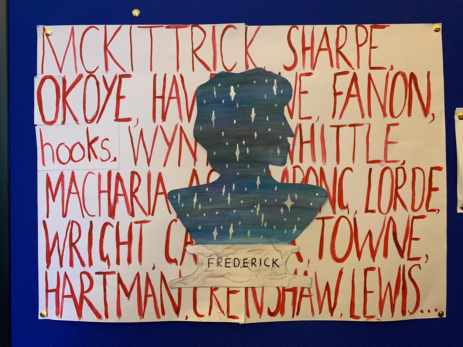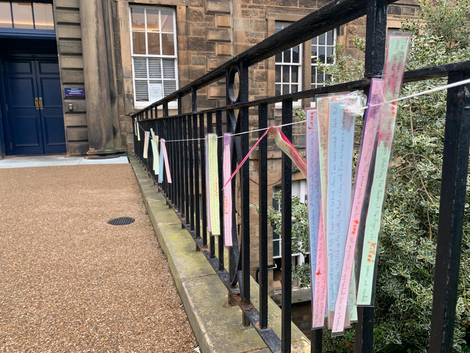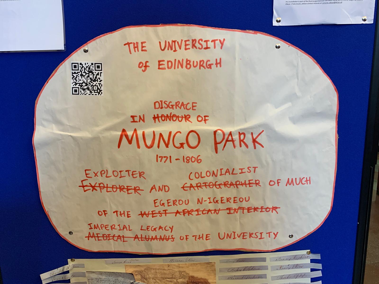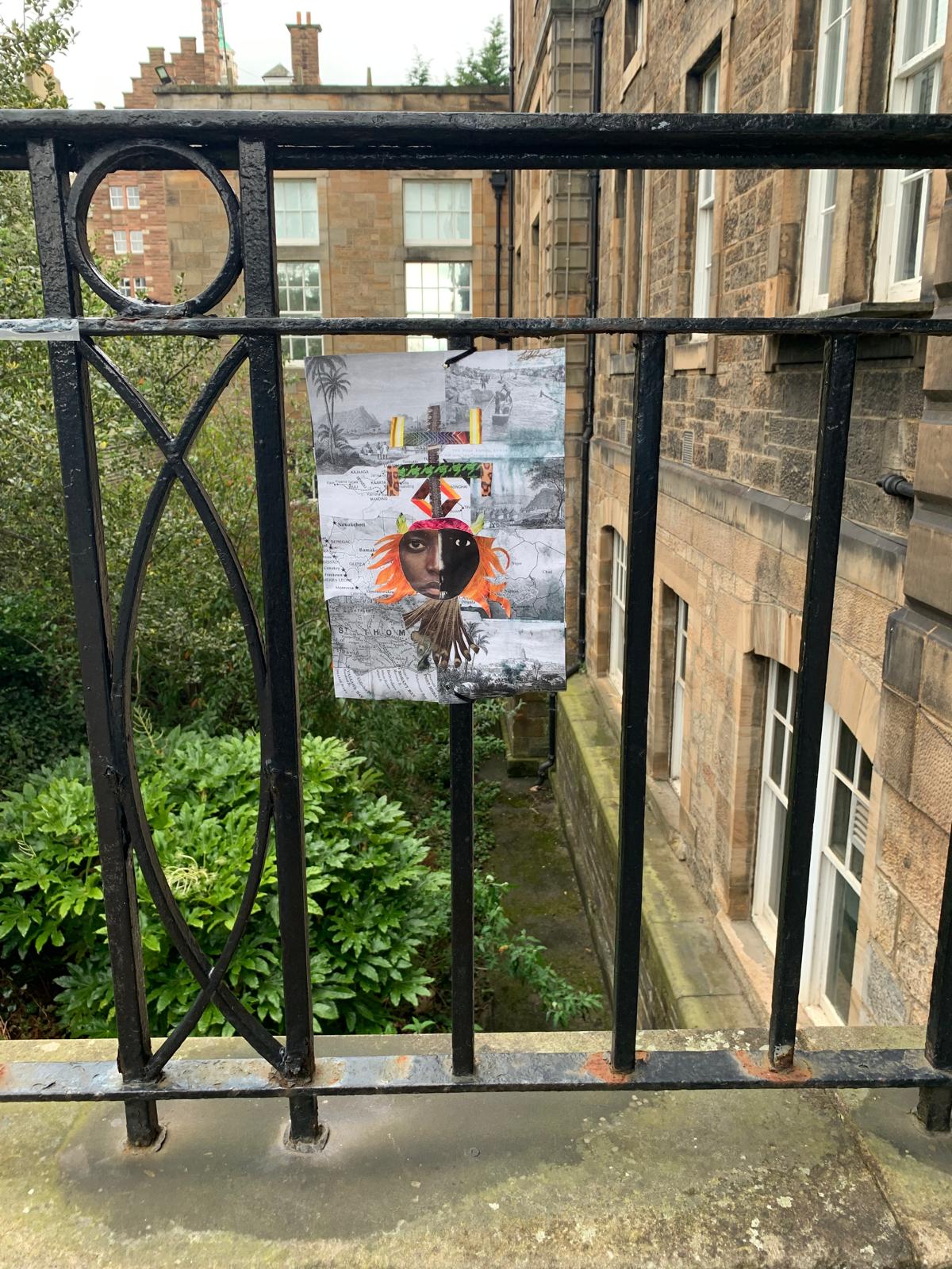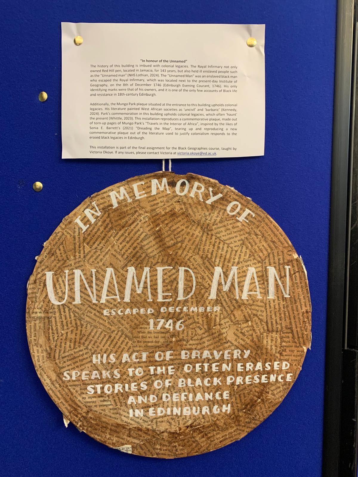“During a Geography undergraduate degree at the University of Edinburgh we have been taught decolonial geographic thinking; the key word there being thinking. Black Geographies has taught us how to actually define and practice this previously nebulous task of working decolonially. This class and project have also importantly shown us the breadth in which we can work to decolonise space, institutions, academia, and the ways in which we/others live, allowing everyone to contribute without the regurgitation of knowledge, but rather the application of Black methodologies to contest or contribute to ways of being in the world. The undertaking of project work, in process and final product to create a site-specific installation which addresses the Black histories of a space, has been vitally important in showing the myriad ways we as students can do more than just think. Through being taught Black methodologies, we have changed from commentator to contributor on how we address and repair Black histories and issues.”